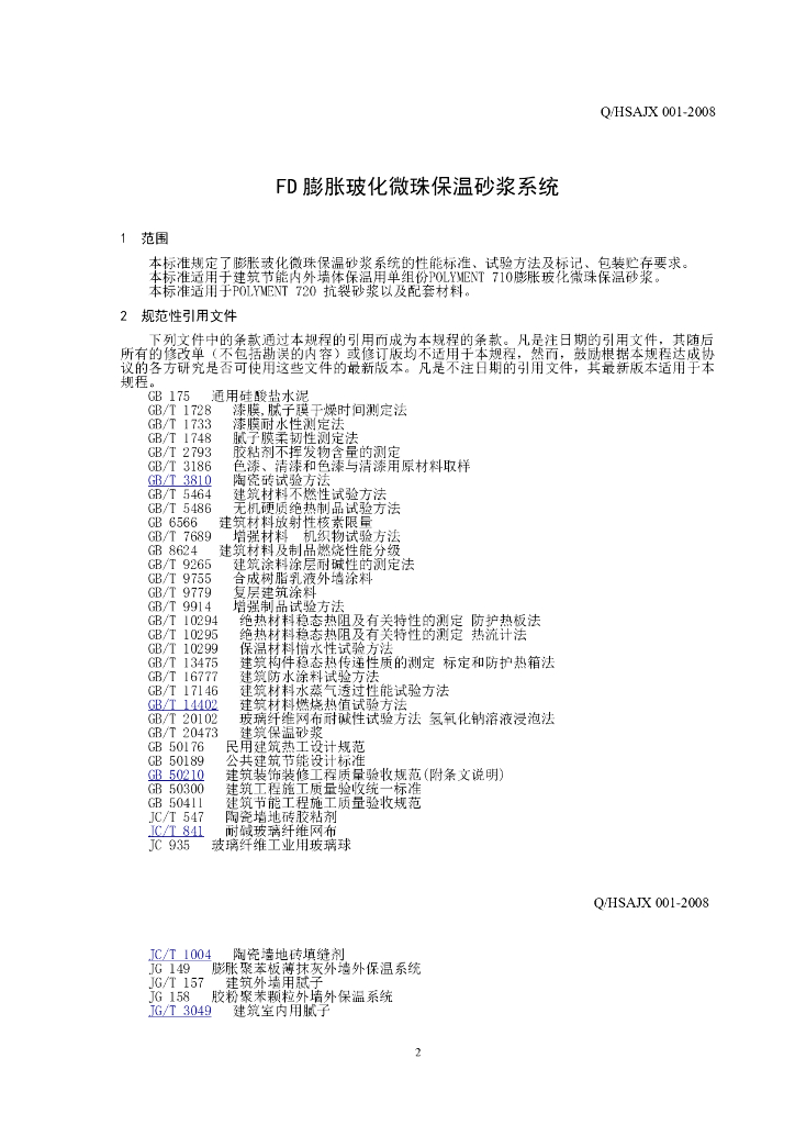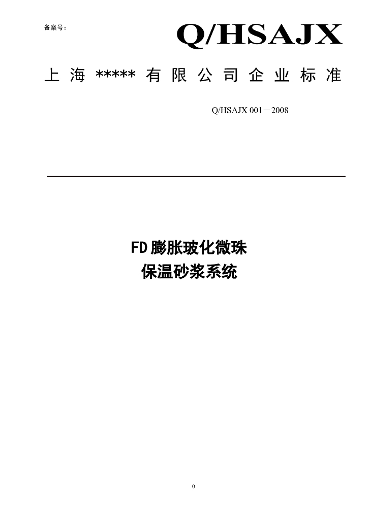 Q/HSAJX 001-2008 FD膨胀玻化微珠保温砂浆系统(安佳信企业标准)