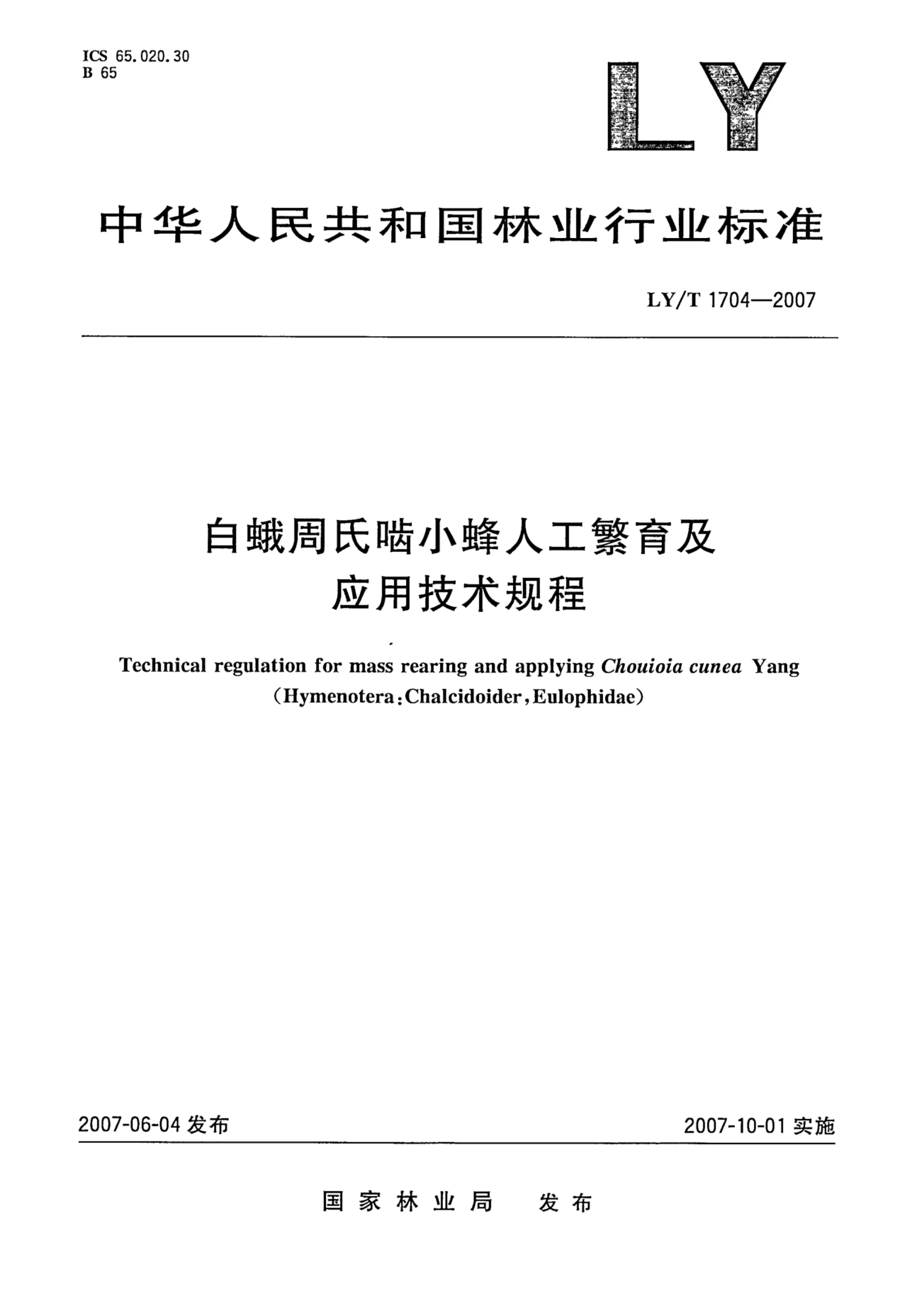 LY/T 1704-2007 白蛾周氏啮小蜂人工繁育及应用技术规程