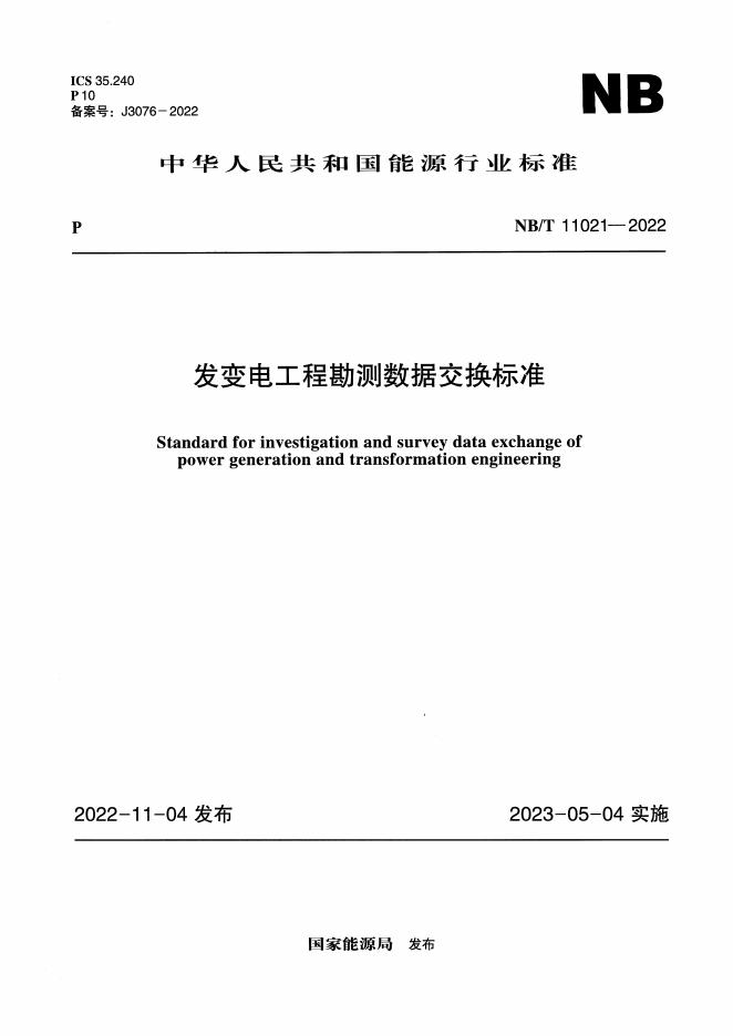 NB/T 11021-2022 发变电工程勘测数据交换标准(附条文说明)