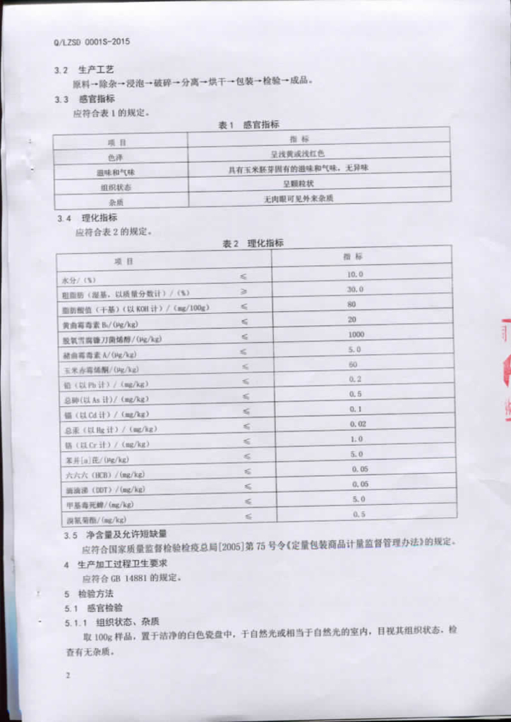 Q/LZSD 0001S-2015 鲁洲生物科技(山东)有限公司 玉米胚芽