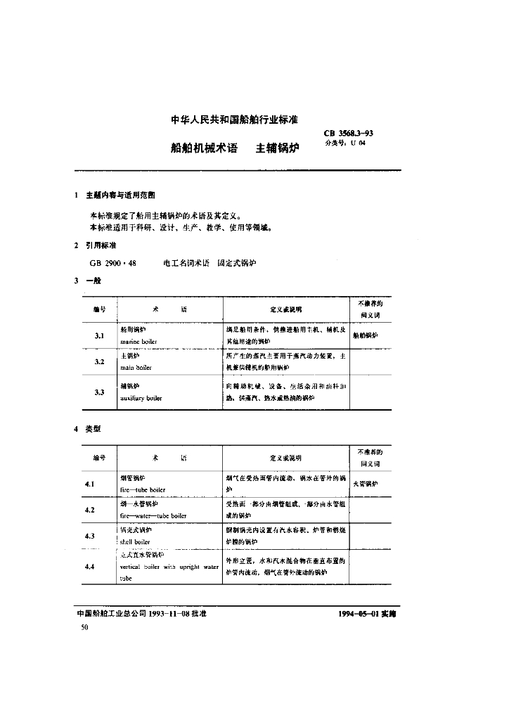 CB 3568.3-1993 船舶机械术语主辅锅炉