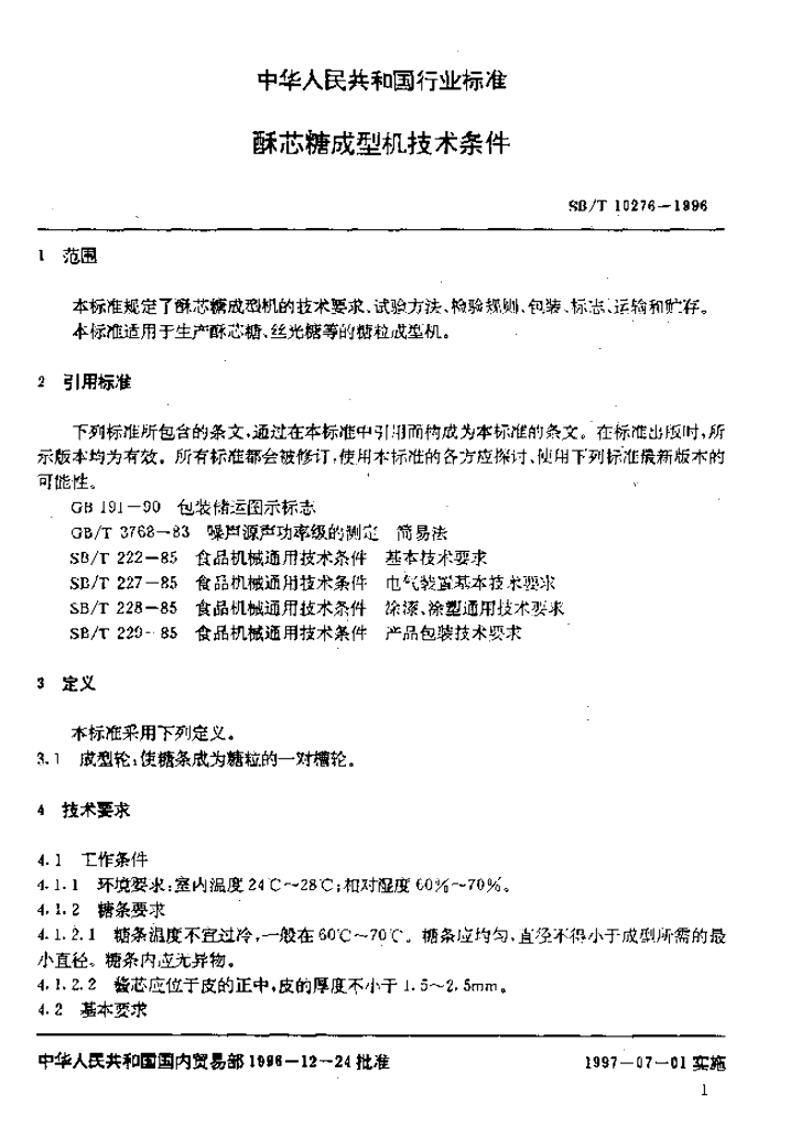 SB/T 10276-1996 酥芯糖成型机技术条件