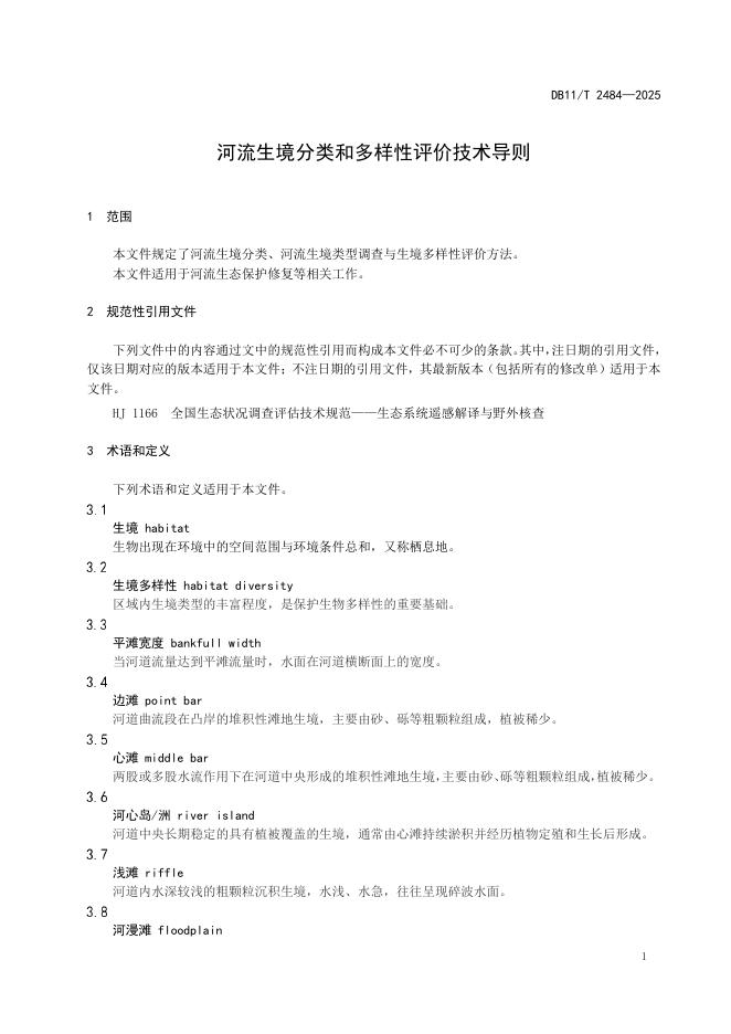 DB11/T 2484-2025 河流生境分类和多样性评价技术导则