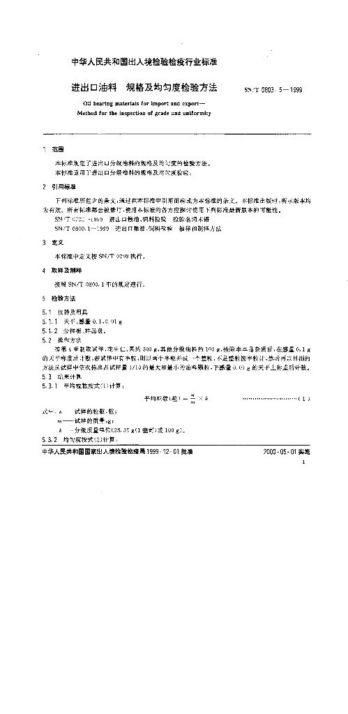 SN/T 0803.5-1999 进出口油料规格及均匀度检验方法
