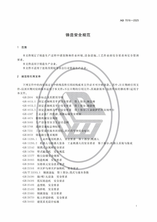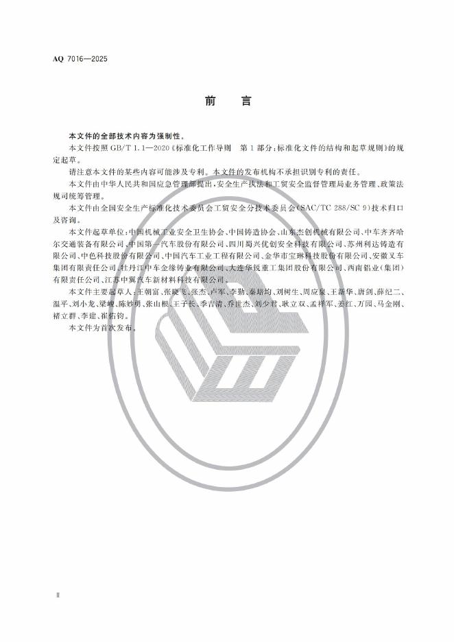 AQ 7016-2025 铸造安全规范