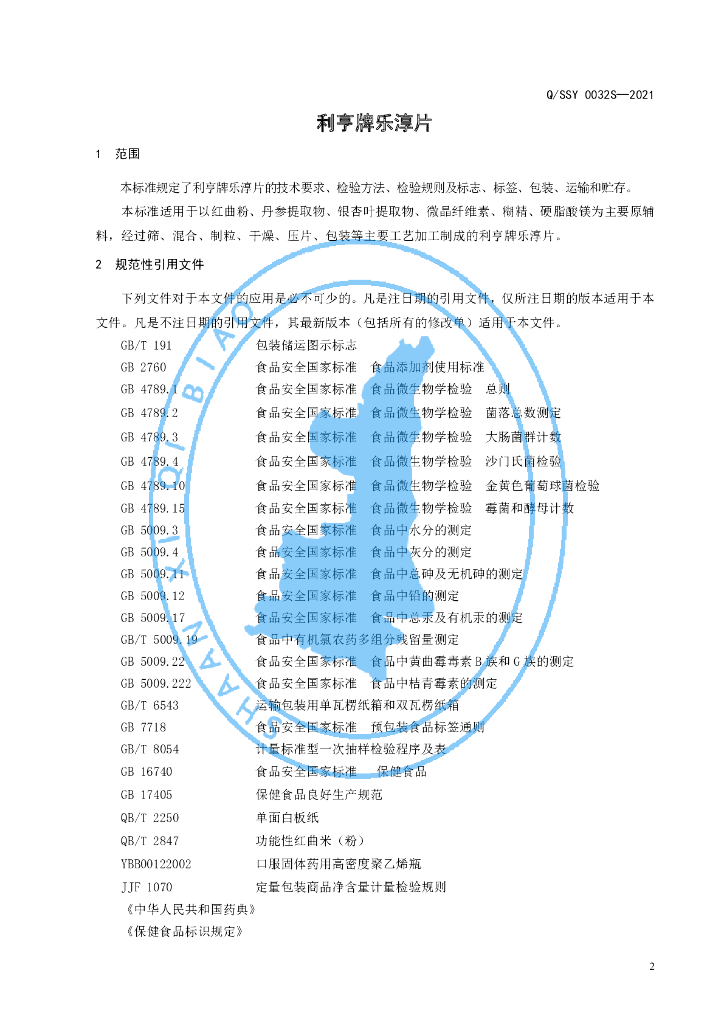 Q/SSY 0032S-2021 利亨牌乐淳片