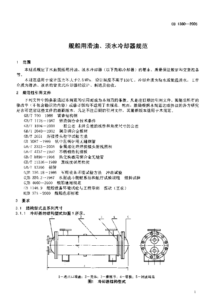 CB 1380-2005 舰船用滑油、淡水冷却器规范