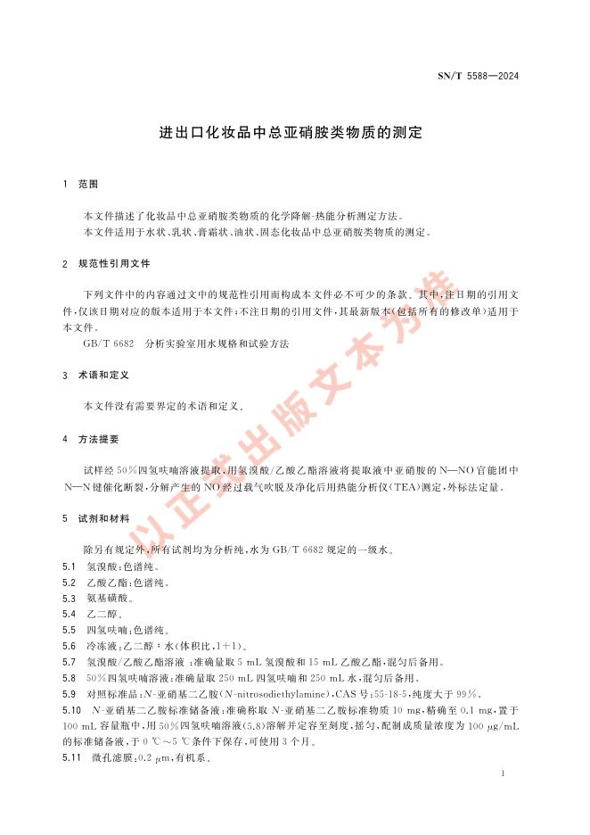 SN/T 5588-2024 进出口化妆品中总亚硝胺类物质的测定
