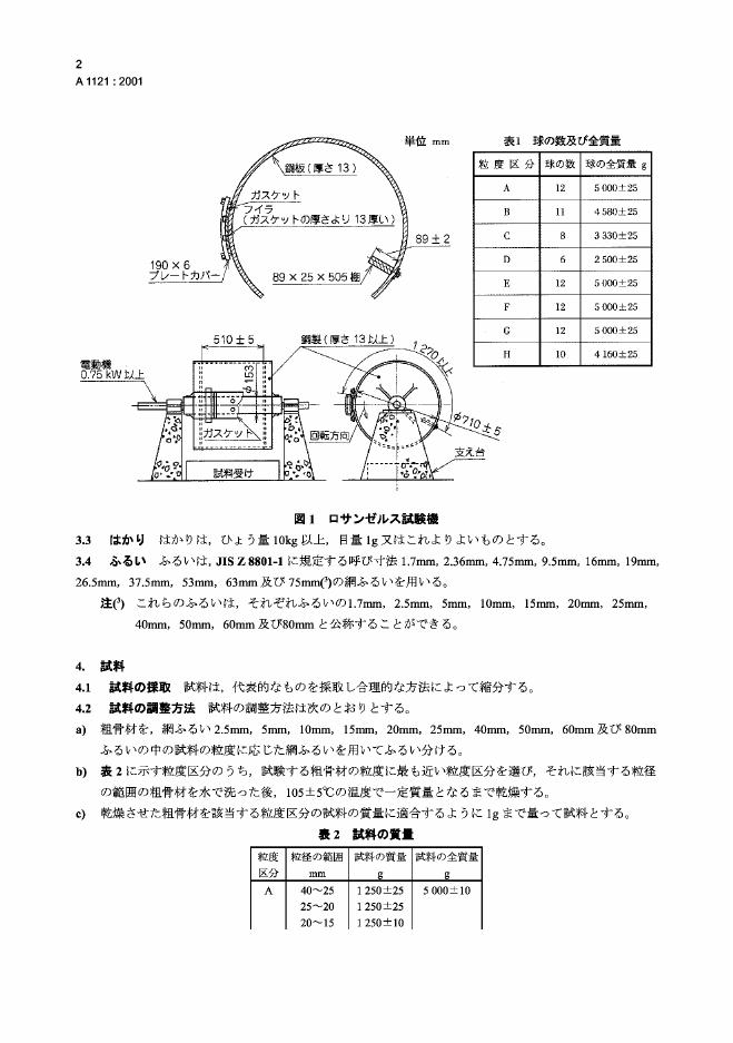 JIS A1121-2001 用洛杉矶试验机测定粗集料耐磨性的试验方法