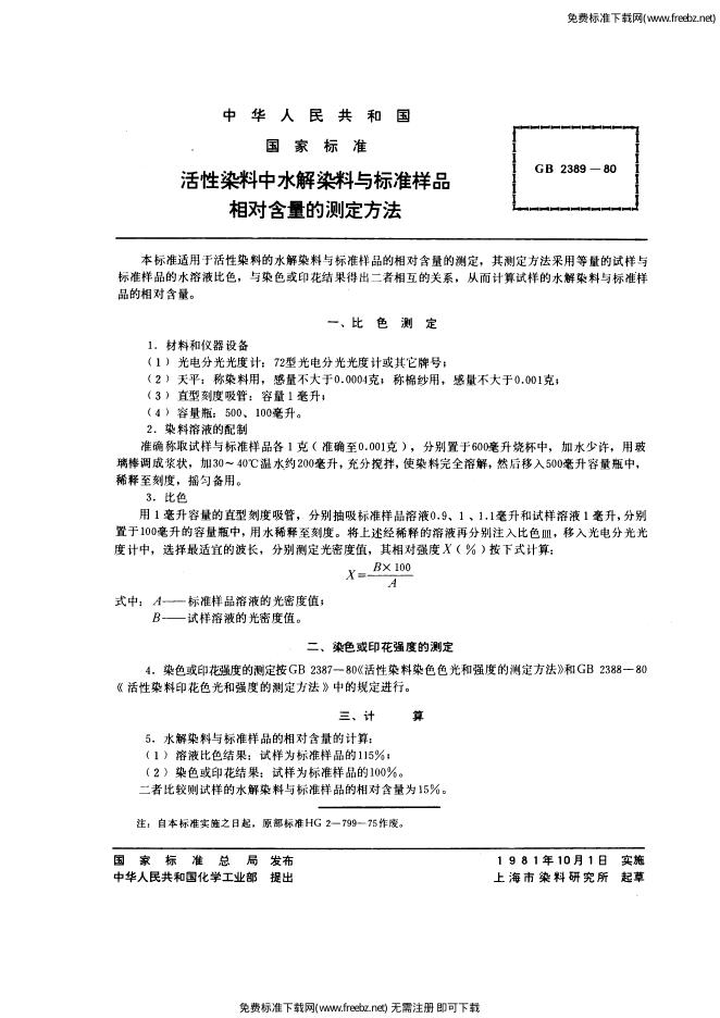 GB/T 2389-1980 活性染料中水解染料和标准样品相对含量的测定方法