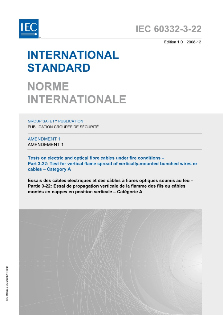 IEC 60332-3-22:2018 电缆和光缆在火焰条件下的燃烧试验 第3-22部分 垂直安装的成束电线电缆火焰垂直蔓延试验 A类