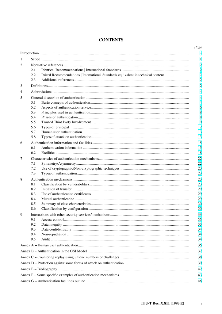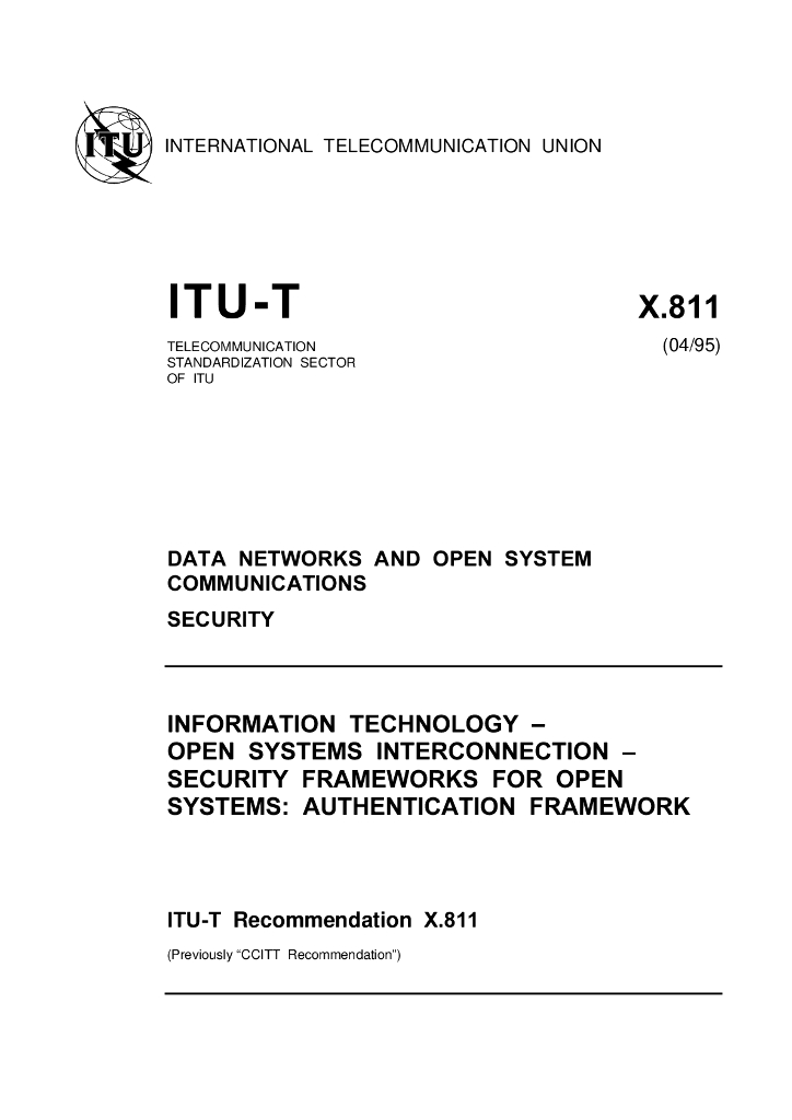 ITU-T X.811-1995 信息技术 开放系统互连(OSI)用于开放系统安全框架:鉴别框架