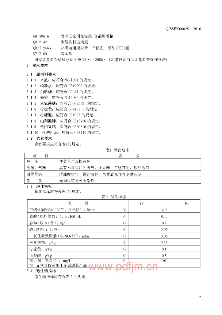 Q/SSEK 0002S-2016 陕西森尔康生物科技有限公司 木瓜汁饮料