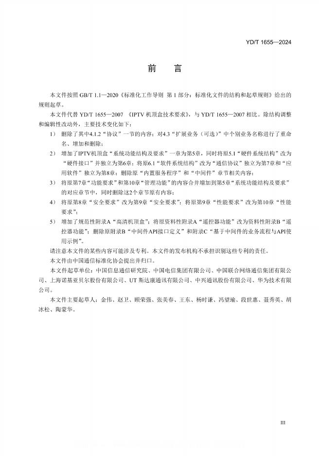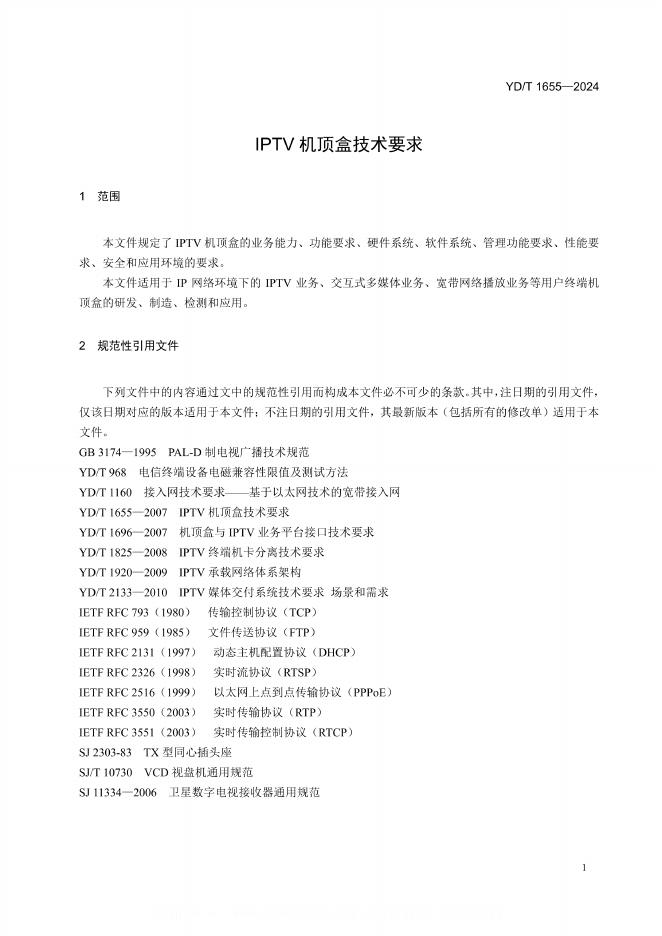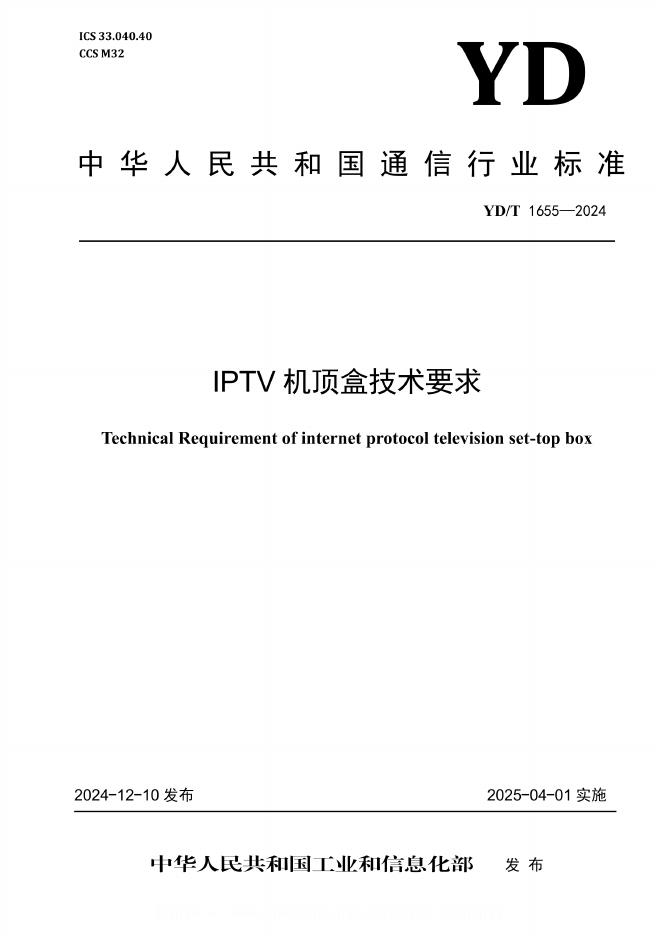 YD/T 1655-2024 IPTV机顶盒技术要求