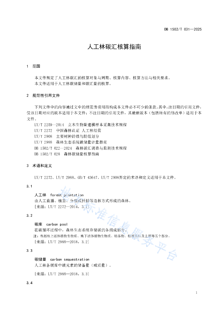 DB1502/T 031-2025 人工林碳汇核算指南
