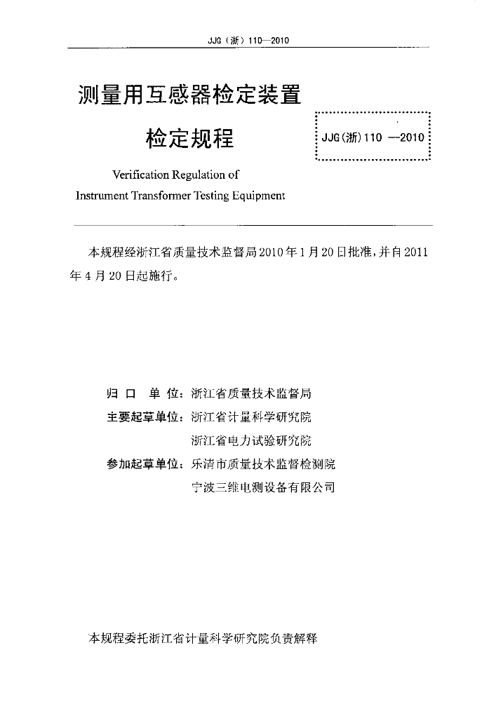 浙江省计量科学研究院、浙江省电力试验研究院、乐清市质量技术监督检测院、宁波三维电测设备有限公司