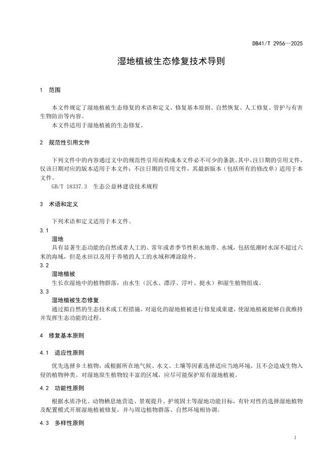 DB41/T 2956-2025 湿地植被生态修复技术导则