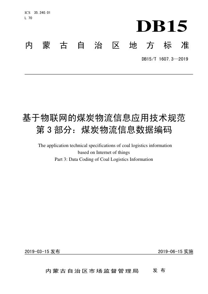 DB15/T 1607.3-2019 基于物联网的煤炭物流信息应用技术规范 第3部分:煤炭物流信息数据编码