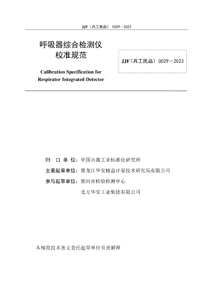 JJF(兵工民品)0029-2023 呼吸器综合检测仪校准规范(报批稿)