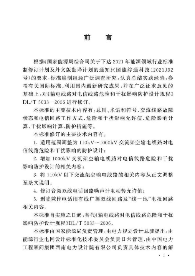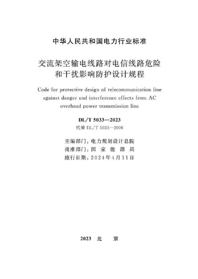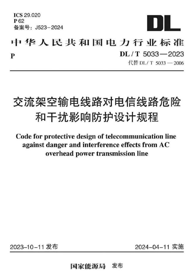DL/T 5033-2023 交流架空输电线路对电信线路危险和干扰影响防护设计规程(附条文说明)