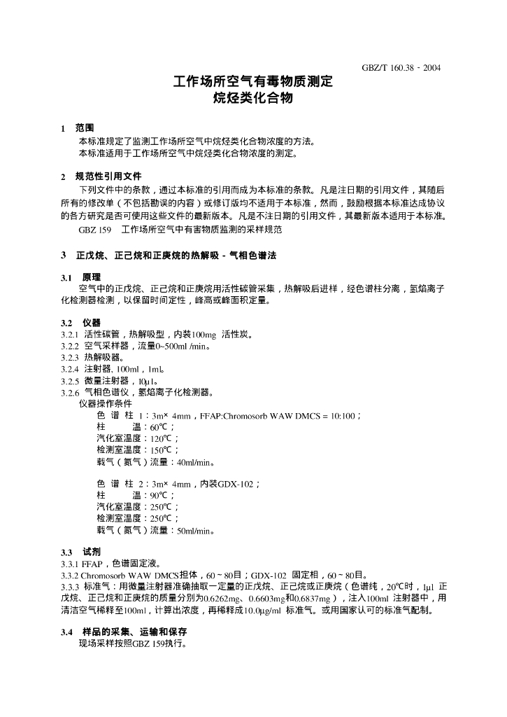 GBZ/T 160.38-2004 工作场所空气有毒物质测定 烷烃类化合物
