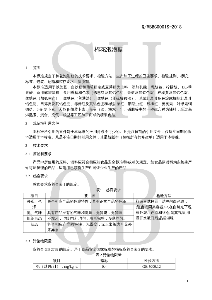 Q/MBBC 0001S-2018 棉花泡泡糖