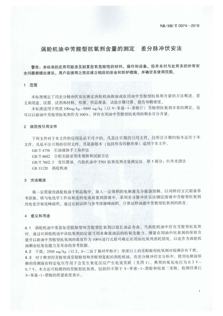 NB/SH/T 0974-2018 涡轮机油中芳胺型抗氧剂含量的测定 差分脉冲伏安法
