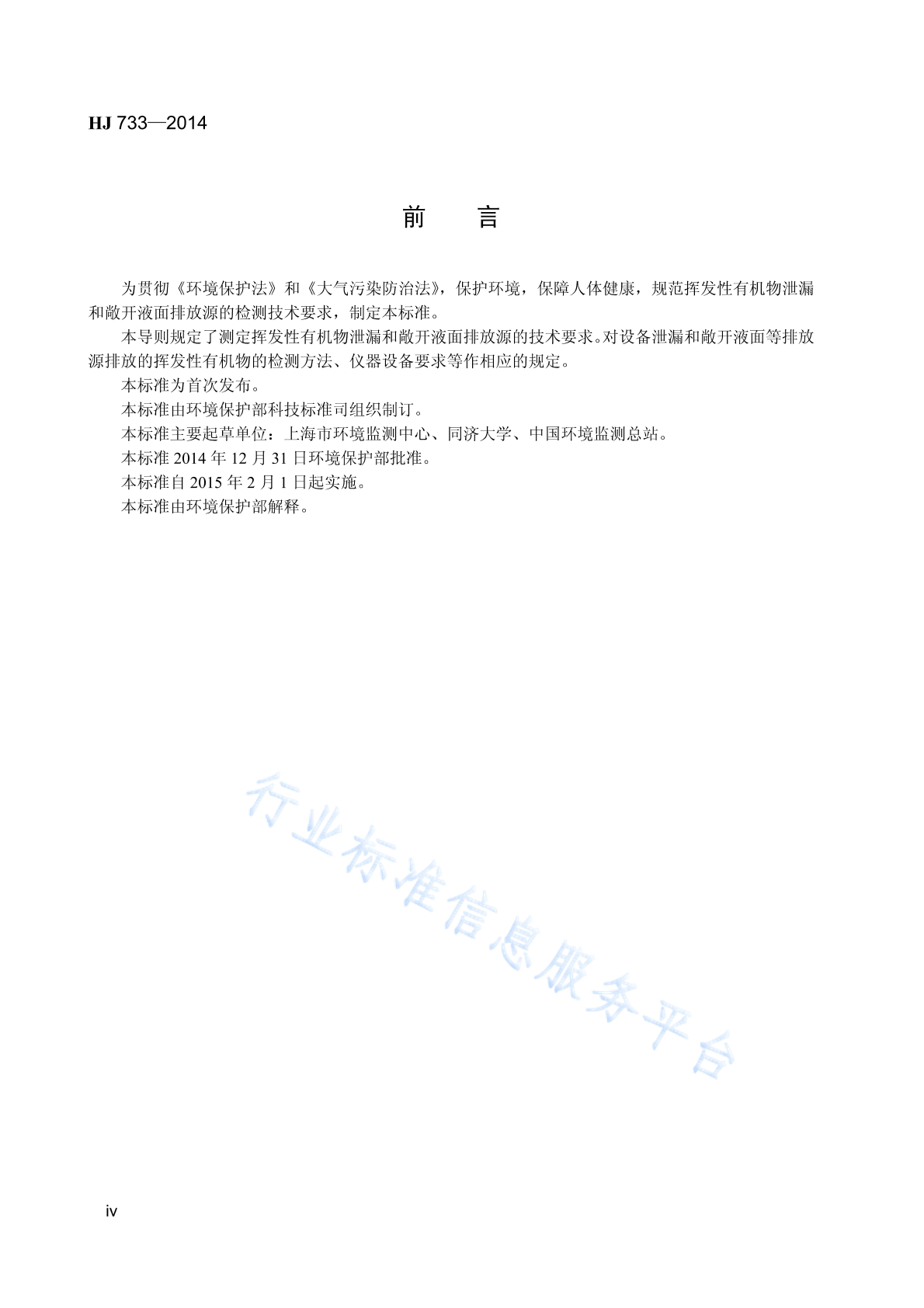 HJ 733-2014 泄漏和敞开液面排放的挥发性有机物检测技术导则