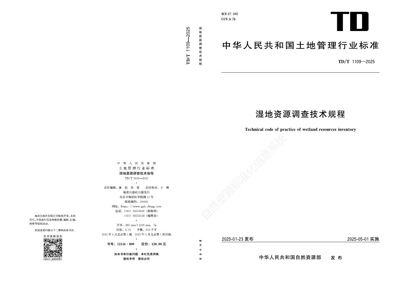 TD/T 1109-2025 湿地资源调查技术规程