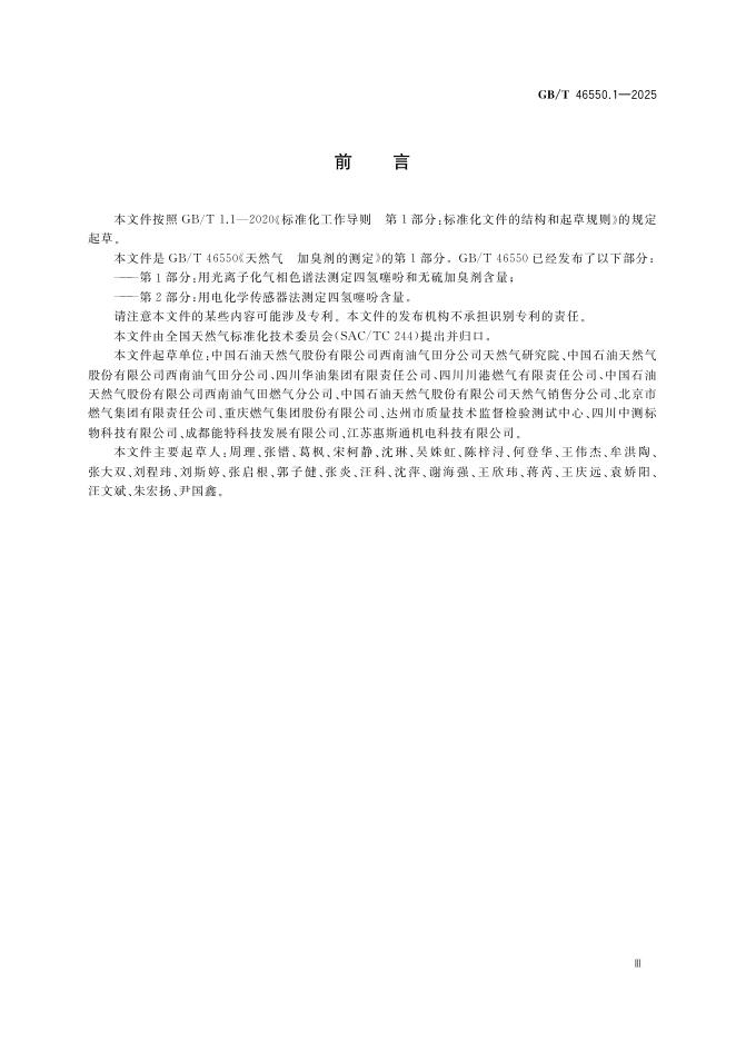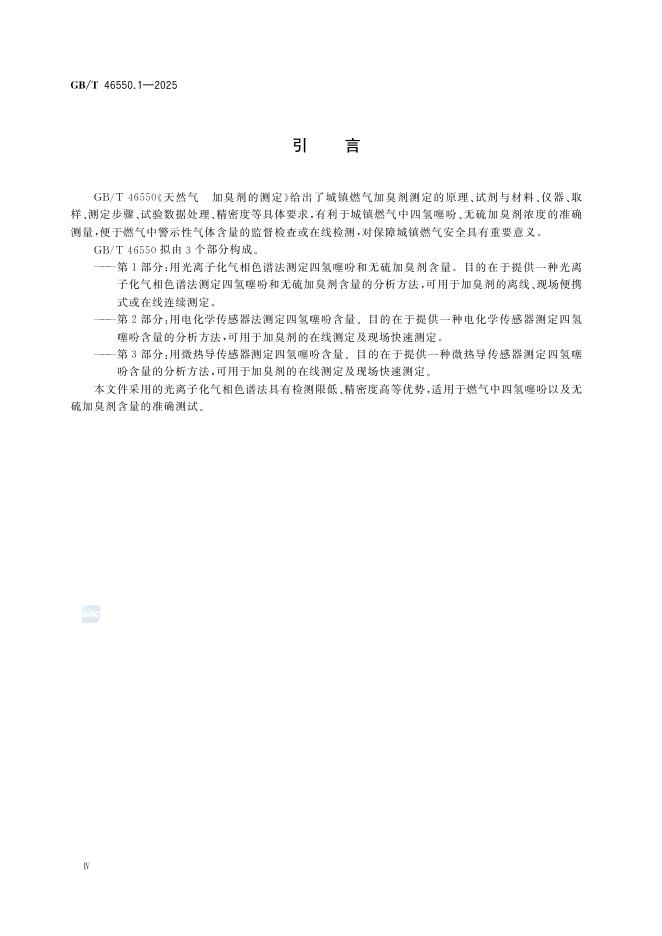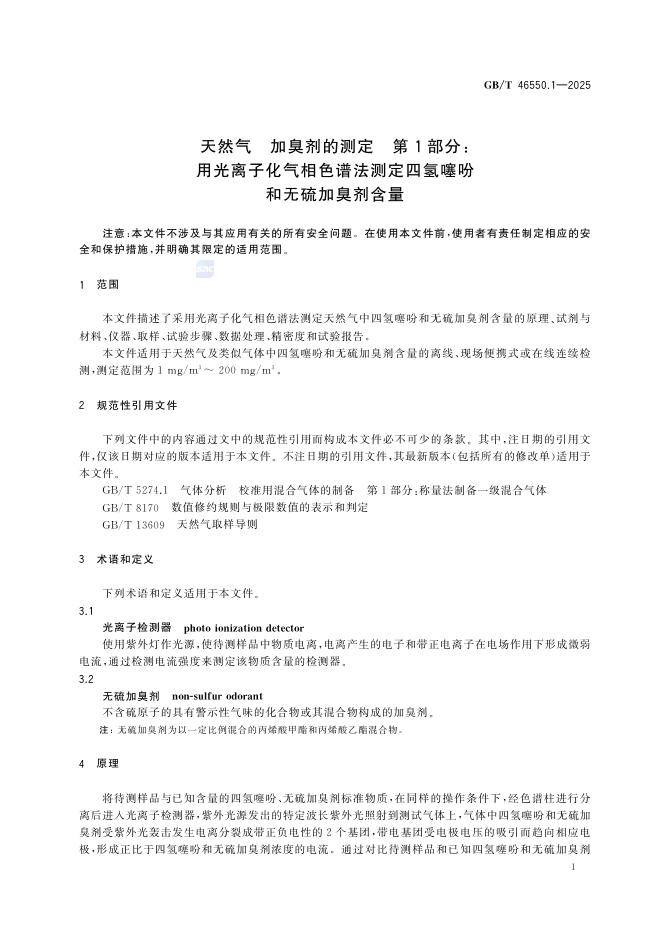 GB/T 46550.1-2025 天然气 加臭剂的测定 第1部分:用光离子化气相色谱法测定四氢噻吩和无硫加臭剂含量