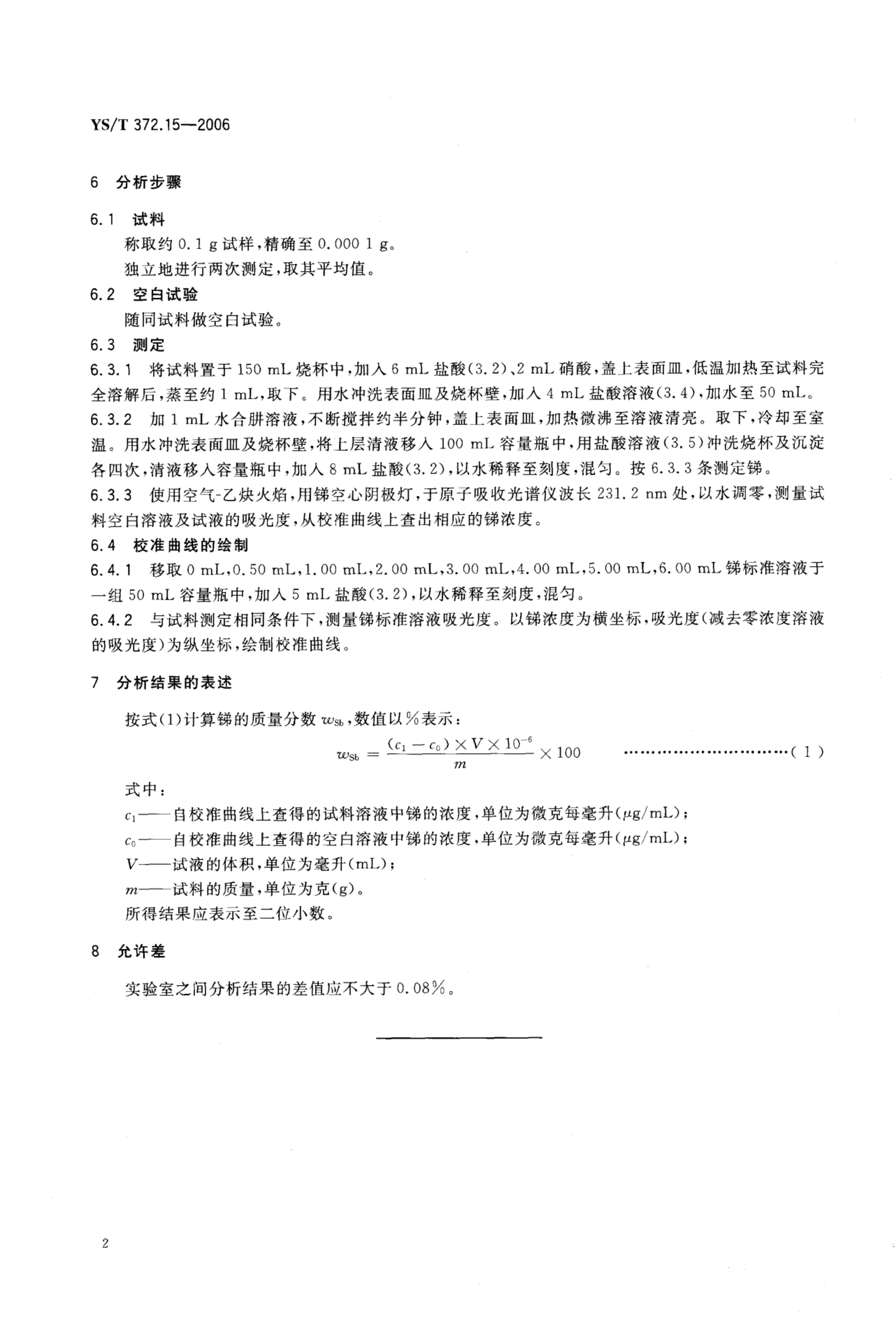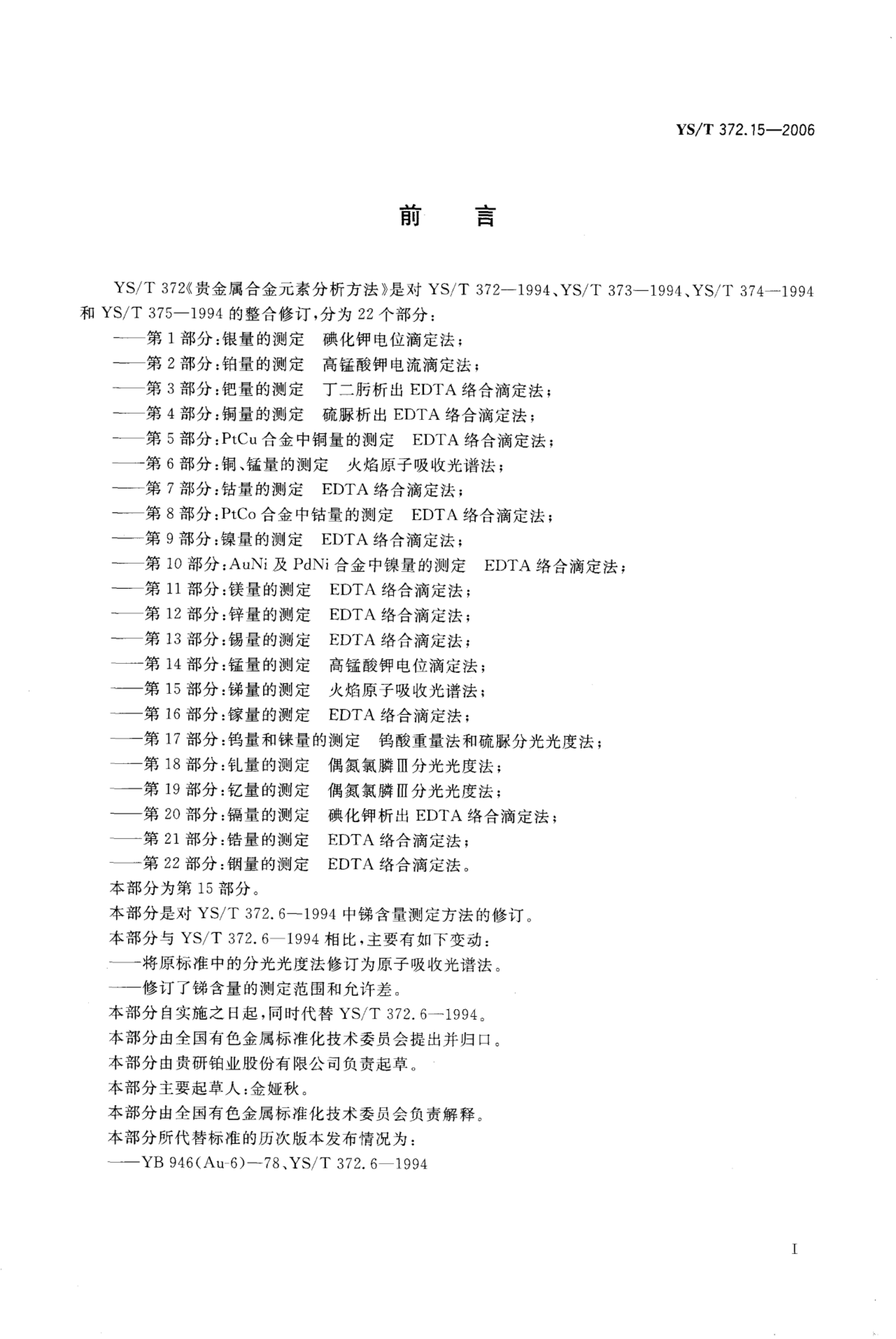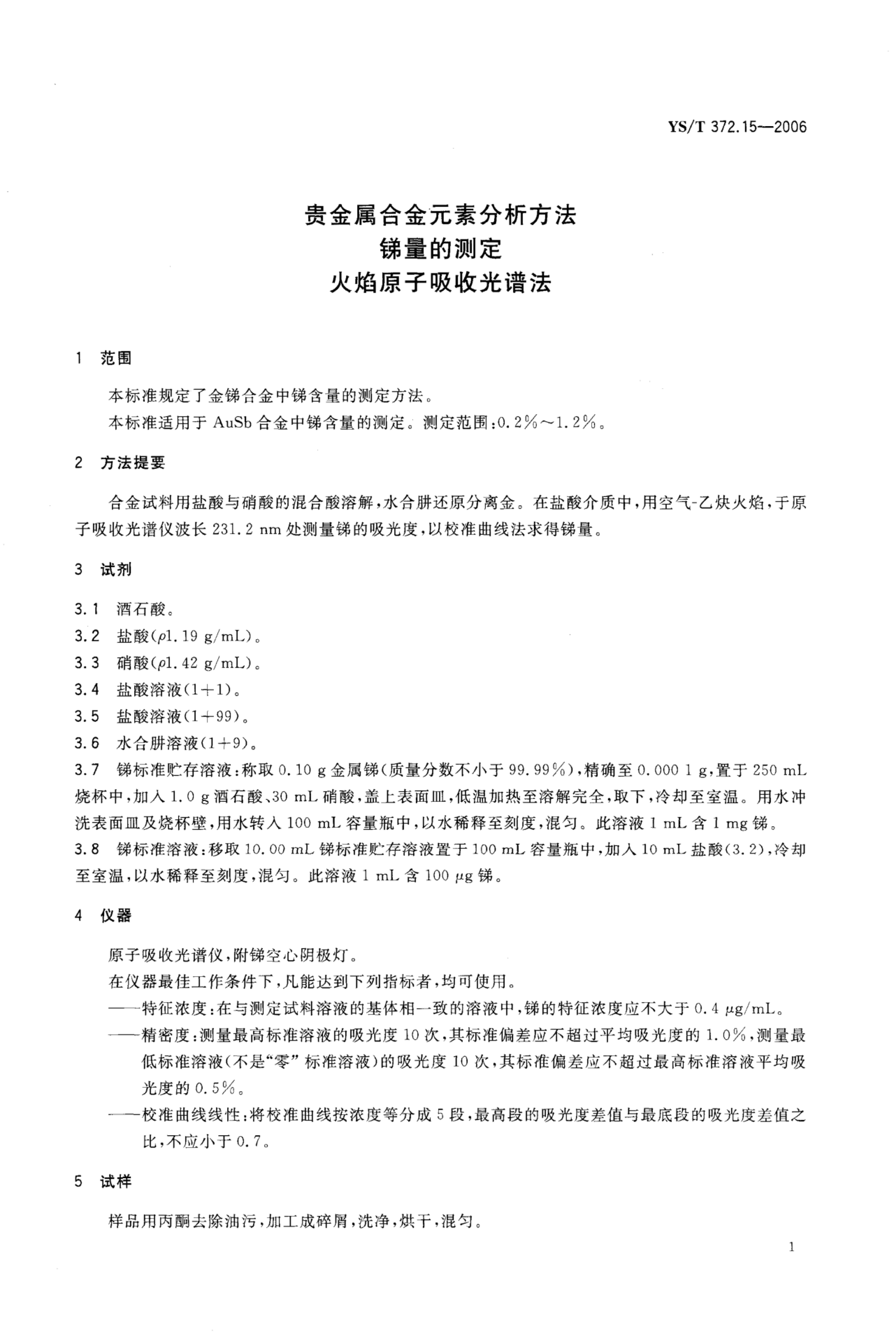 YS/T 372.15-2006 贵金属合金元素分析方法 锑量的测定火焰原子吸收光谱法