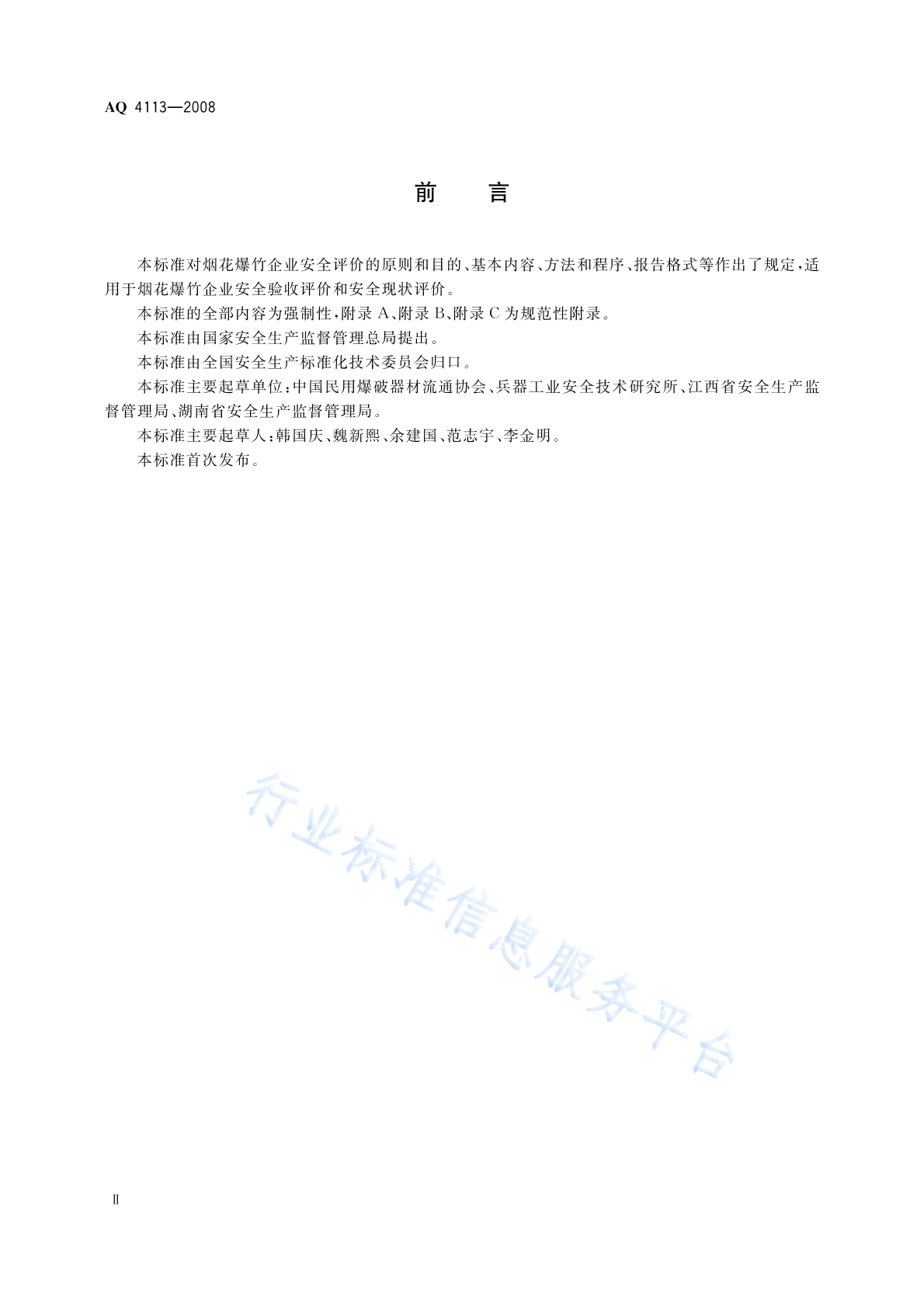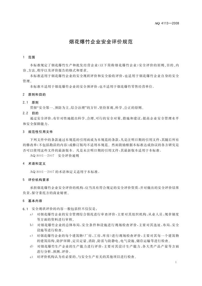 AQ/T 4113-2008 烟花爆竹企业安全评价规范