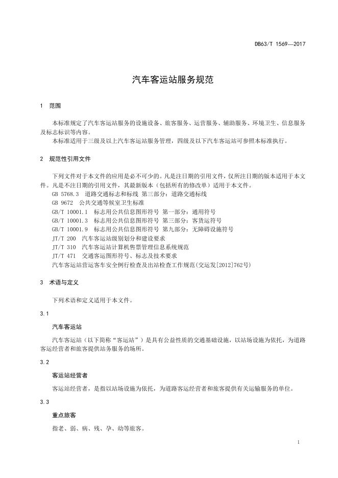 DB63/T 1569-2017 汽车客运站服务规范