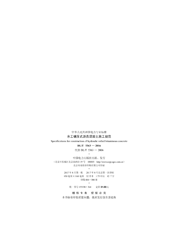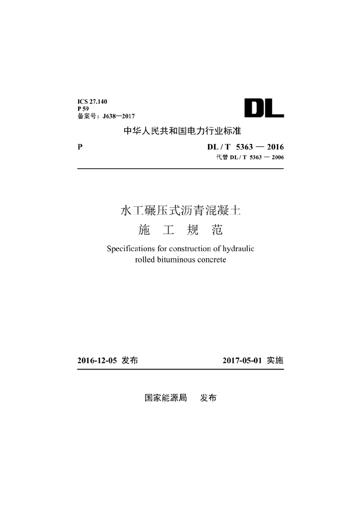 DL/T 5363-2016 水工碾压式沥青混凝土施工规范