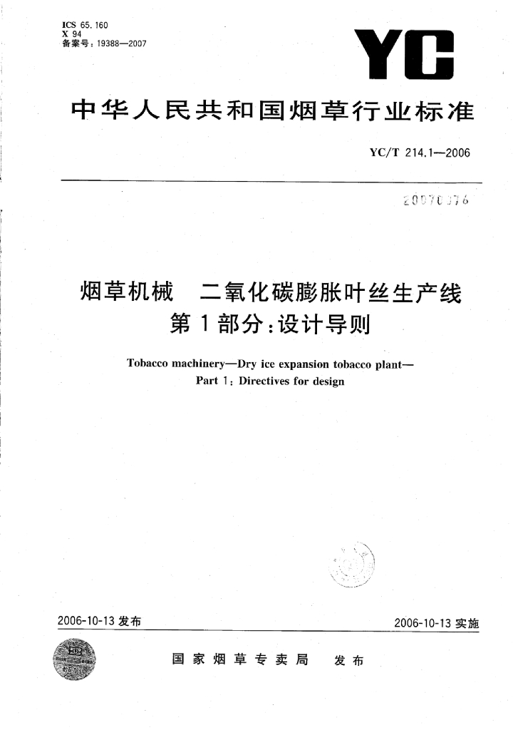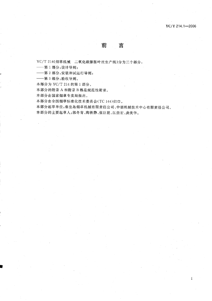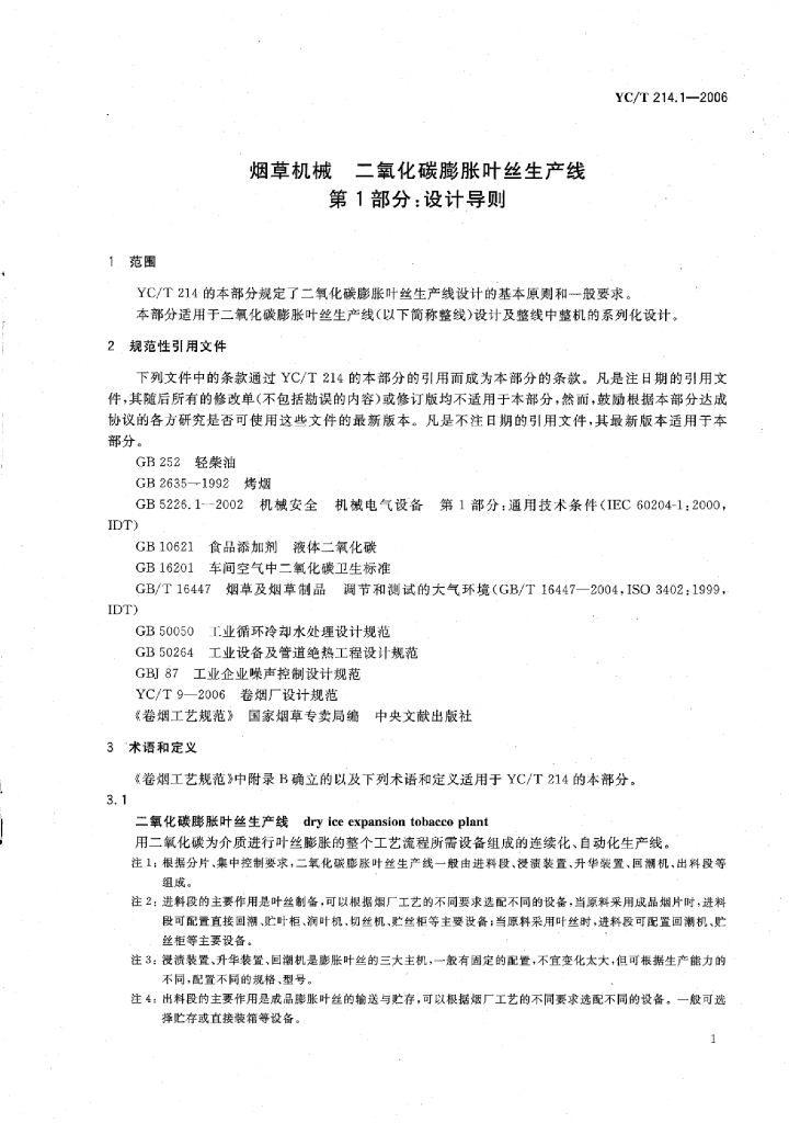 YC/T 214.1-2006 烟草机械二氧化碳膨胀叶丝生产线 第1部分:设计导则