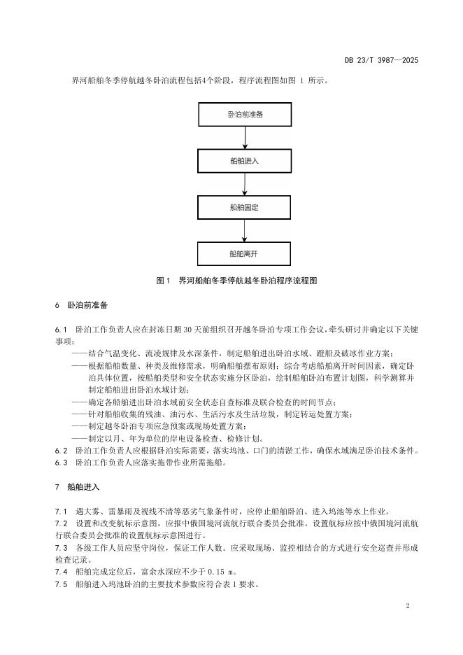 DB23/T 3987-2024 界河船舶冬季停航越冬卧泊规程
