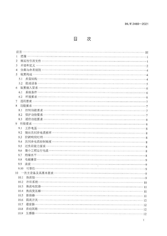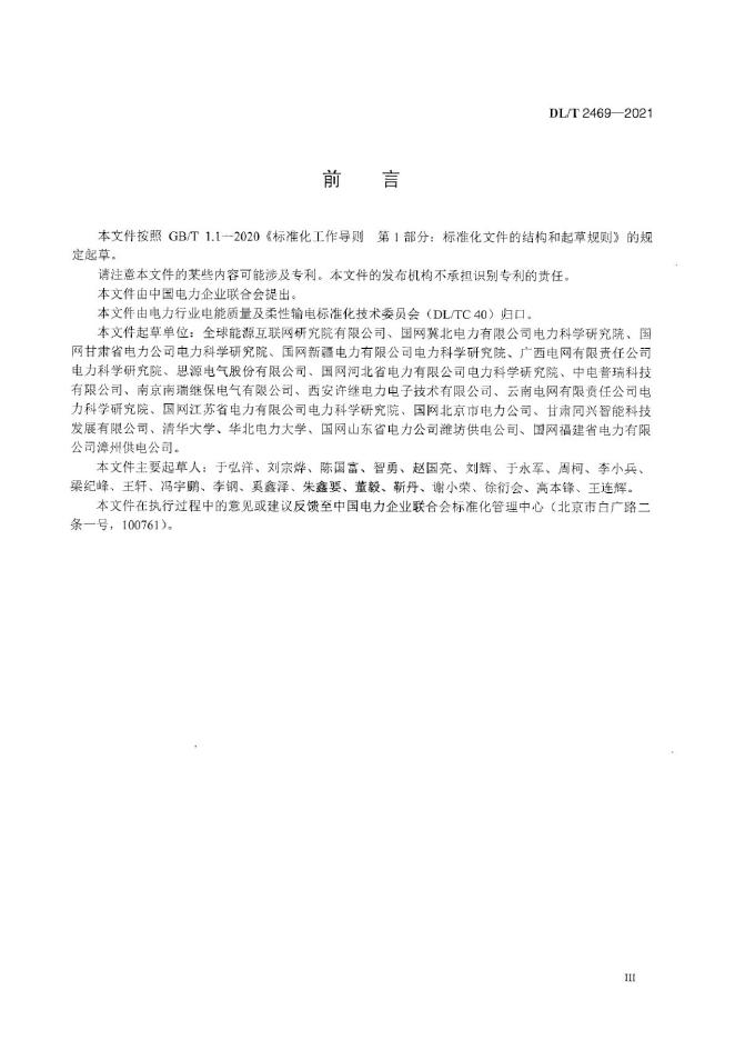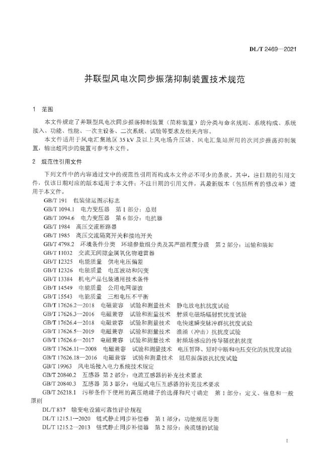 DL/T 2469-2021 并联型电网侧风电次同步振荡抑制装置技术规范