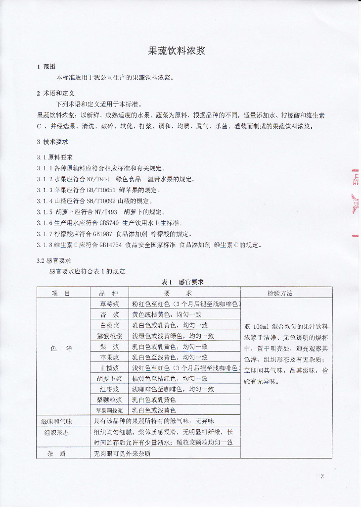 Q/PGTHX 0002-2015 北京泰华兴食品有限公司 果蔬饮料浓浆