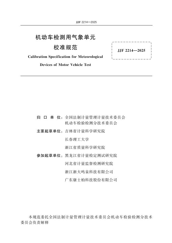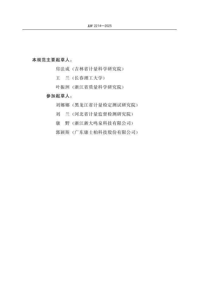 吉林省计量科学研究院、长春理工大学、浙江省质量科学研究院、黑龙江省计量检定测试研究院、河北省计量监督检测研究院、浙江浙大鸣泉科技有限公司、广东康士柏科技股份有限公司
