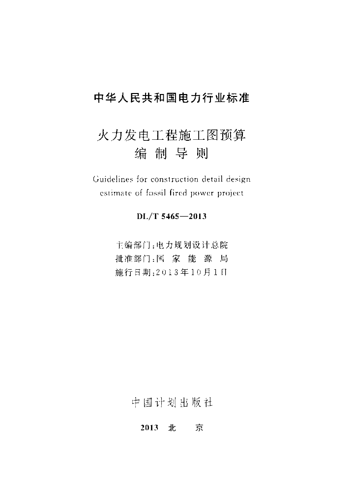 DL/T 5465-2013 火力发电工程施工图预算编制导则