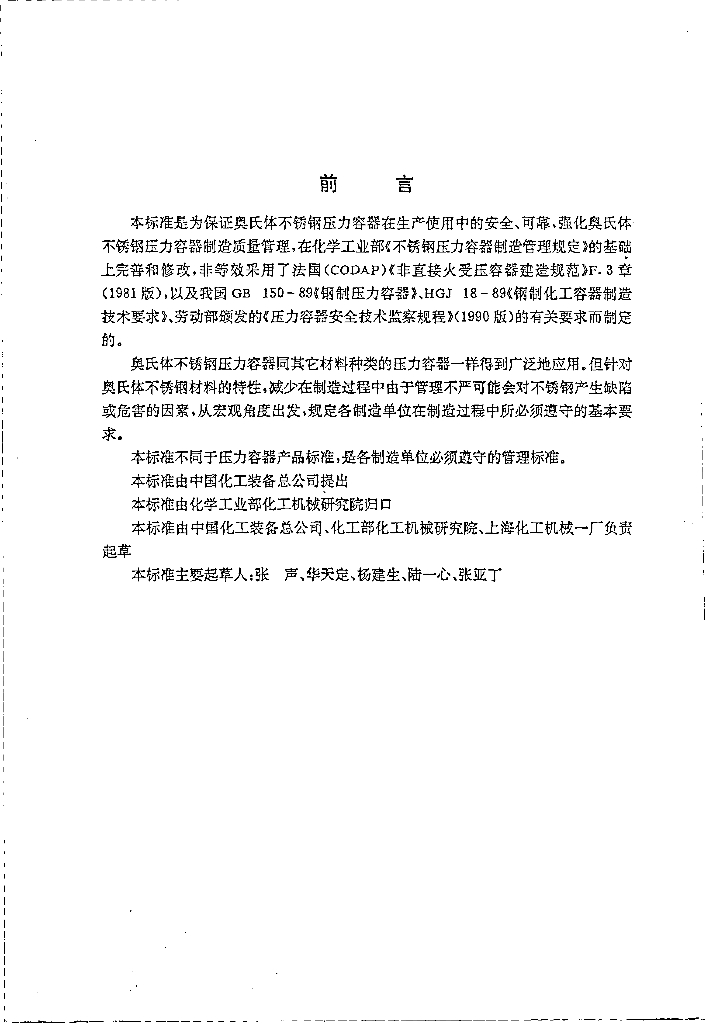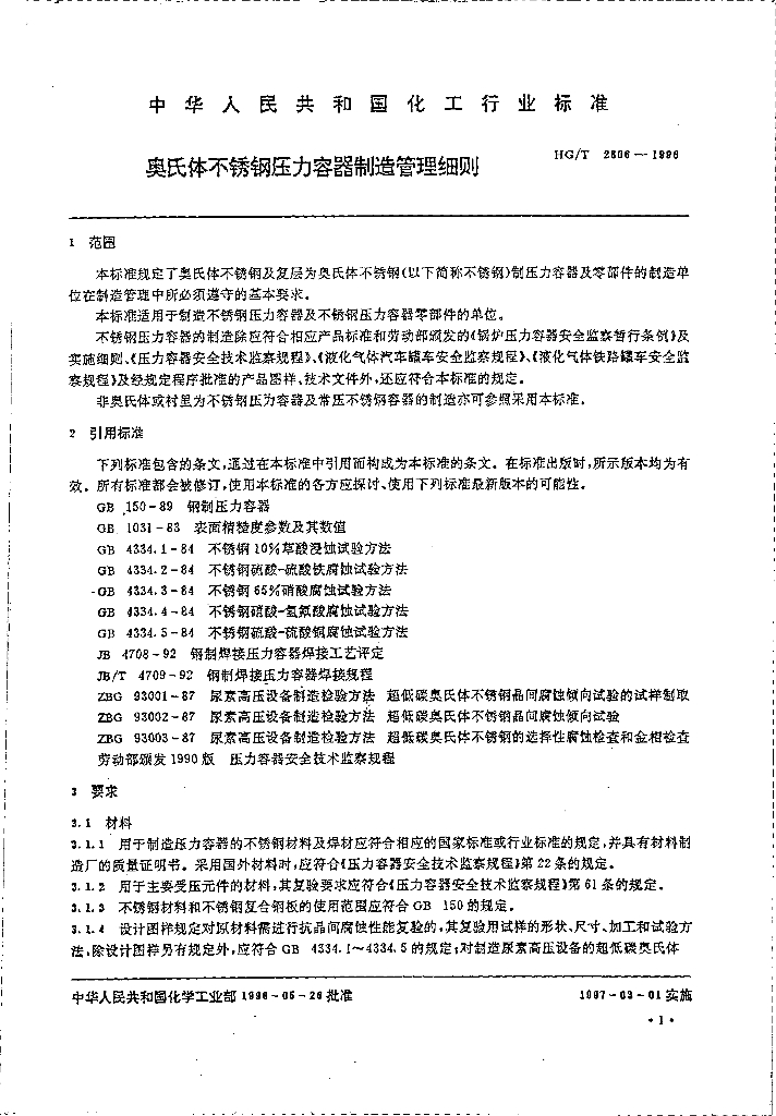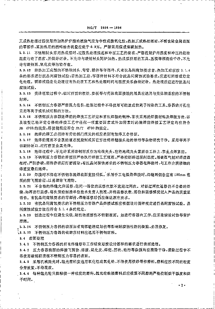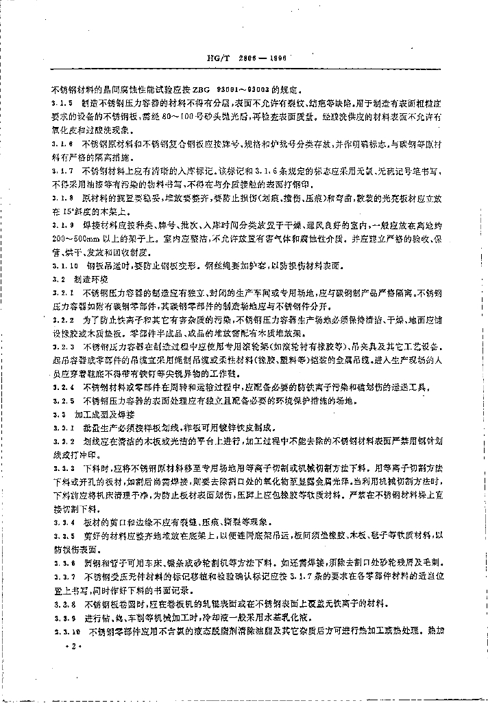 HG/T 2806-1996 奥氏体不锈钢压力容器制造管理细则