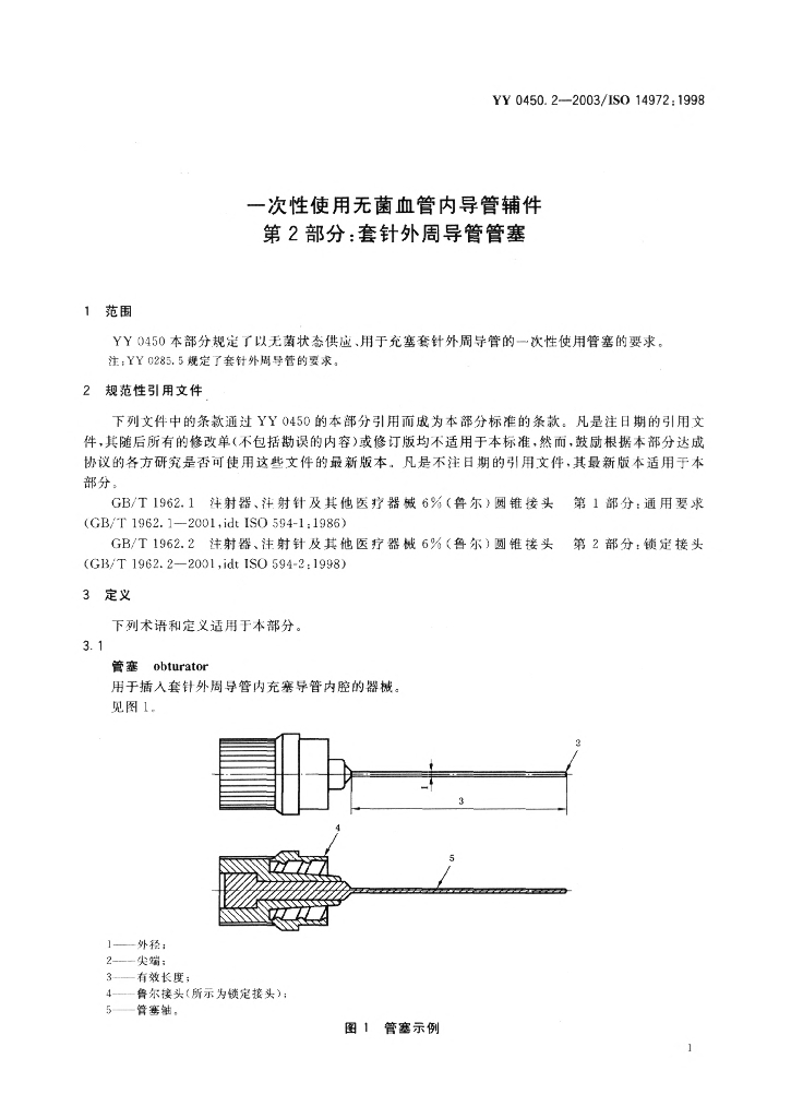 YY/T 0450.2-2003 一次性使用无菌血管内导管辅件第2部分:套针周导管管塞