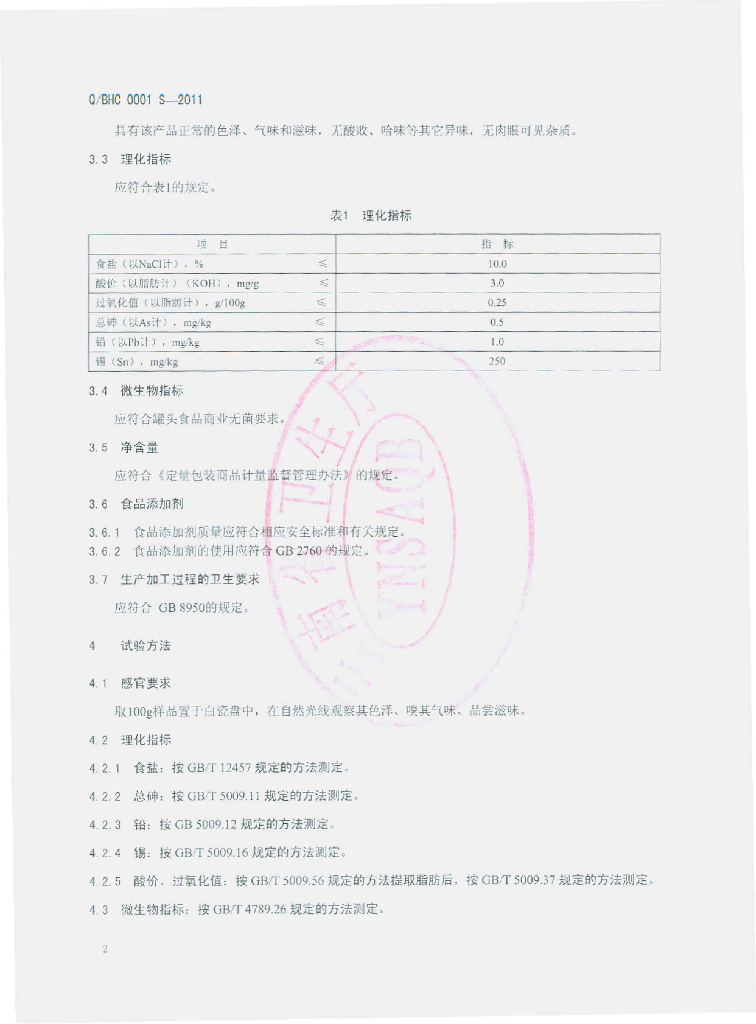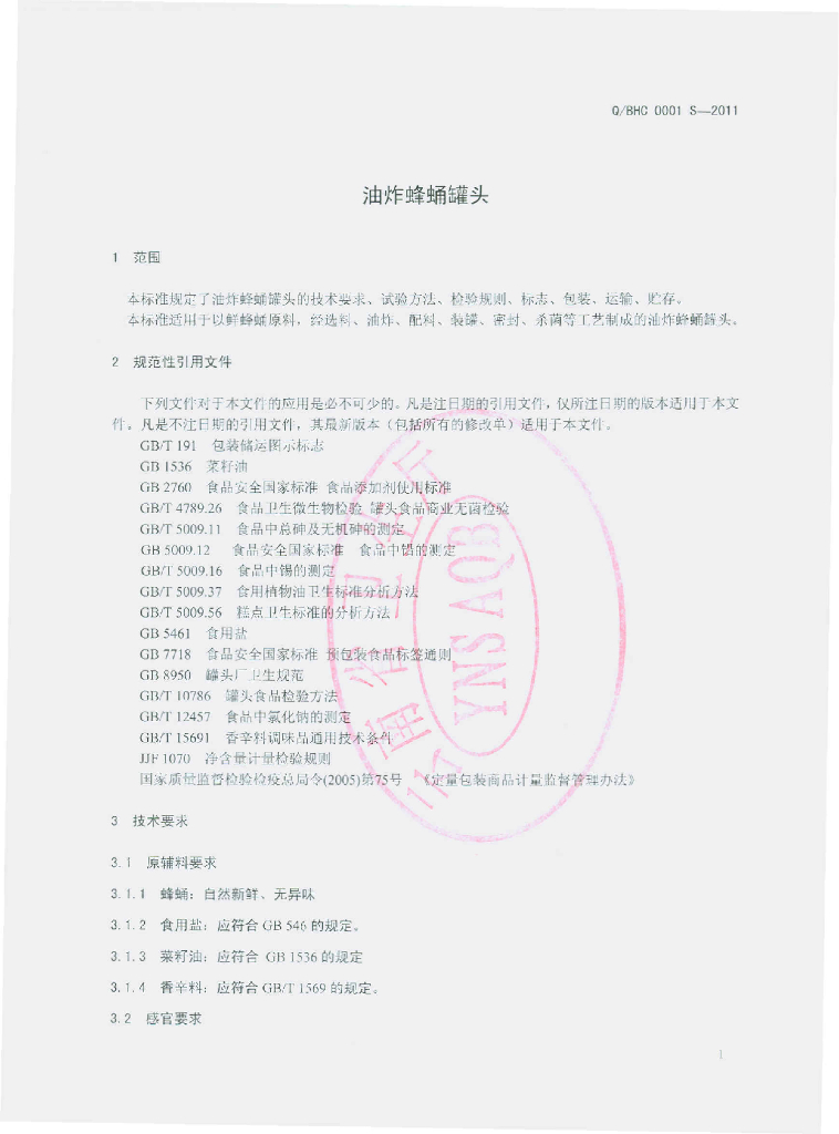 Q/BHC 0001S-2011 油炸蜂蛹罐头