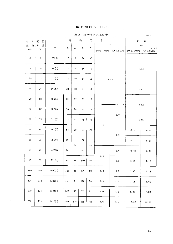 JG/T 3031.5-1996 建筑用铜管管件90°弯头