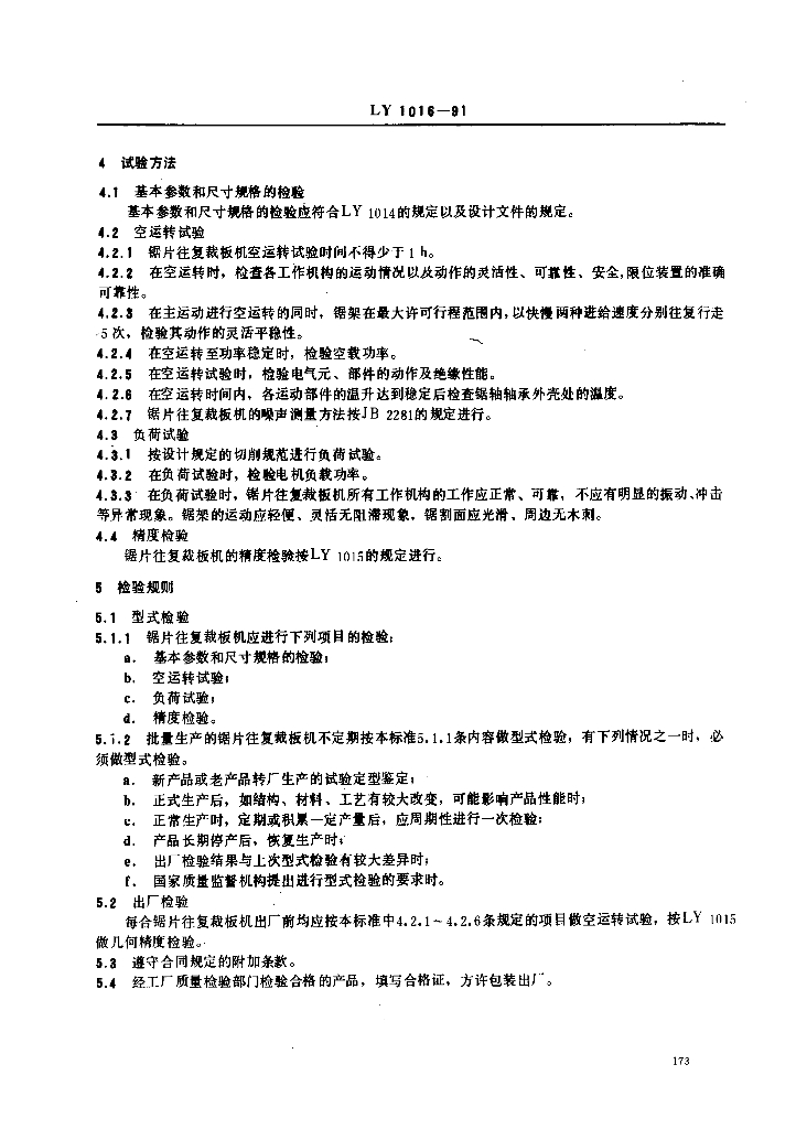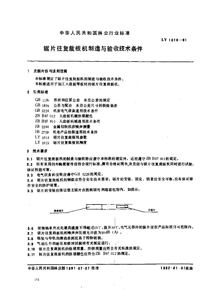 LY 1016-1991 锯片往复裁板机制造与验收技术条件