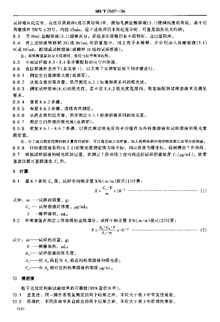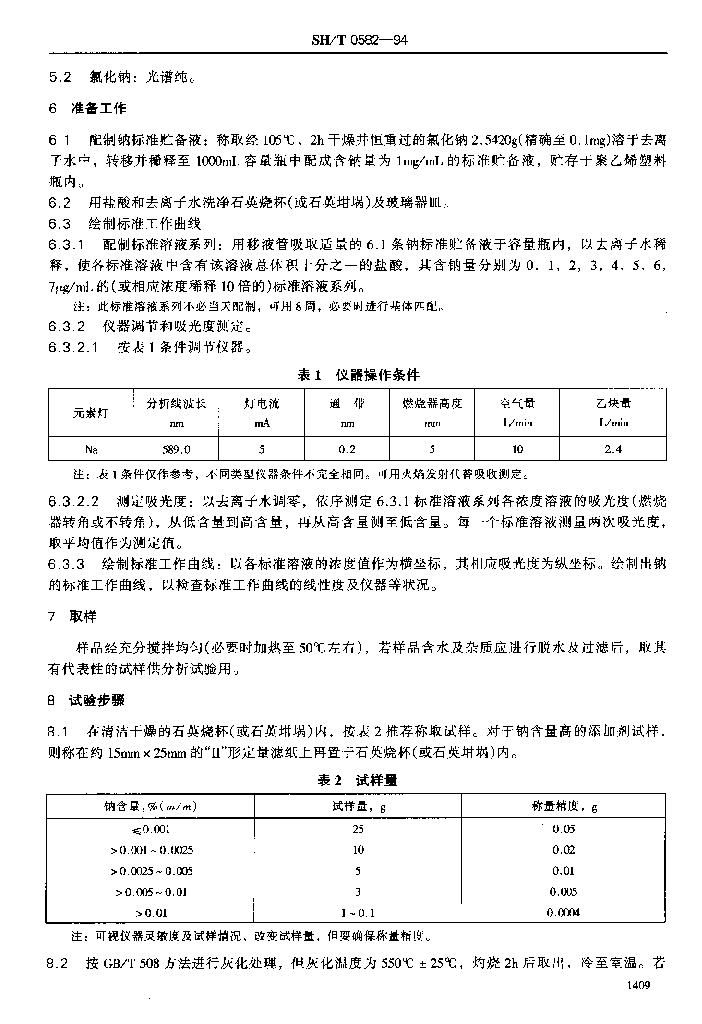 SH/T 0582-1994 润滑油和添加剂中钠含量测定法(原子吸收光谱法)