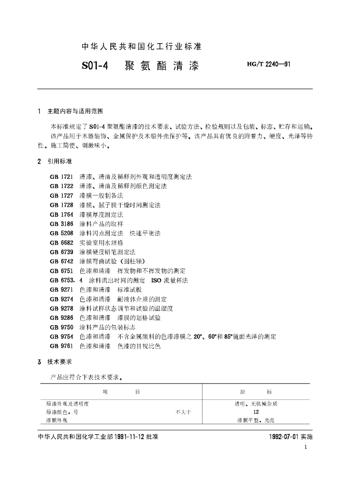 HG/T 2240-1991 S0l-4聚氨酯清漆