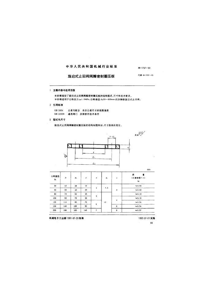 JB 1737-1991 旋启式止回阀阀瓣密封圈压板