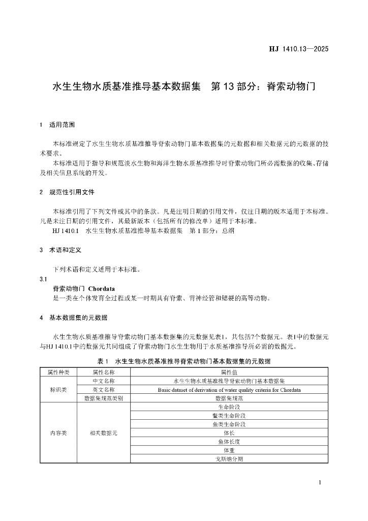 HJ 1410.13-2025 水生生物水质基准推导基本数据集 第13部分:脊索动物门