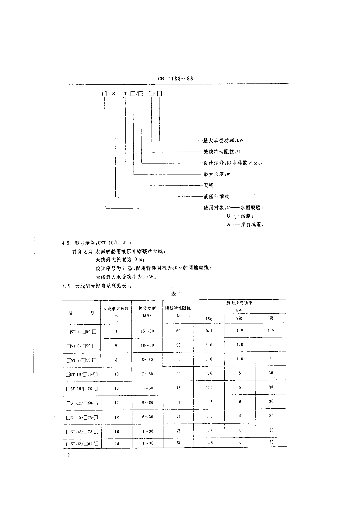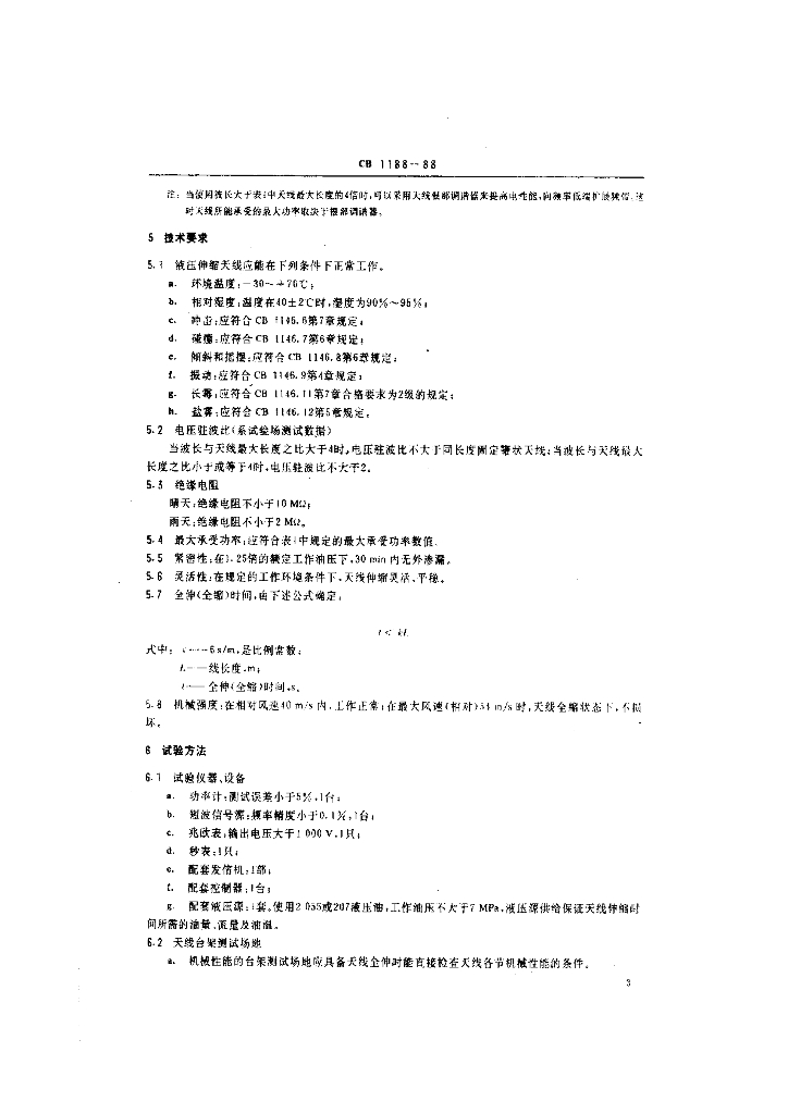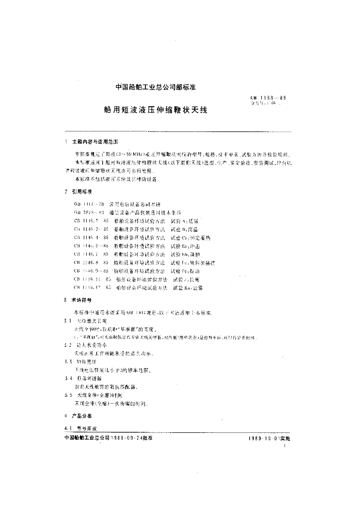 CB 1188-1988 船用短波液压伸缩鞭状天线